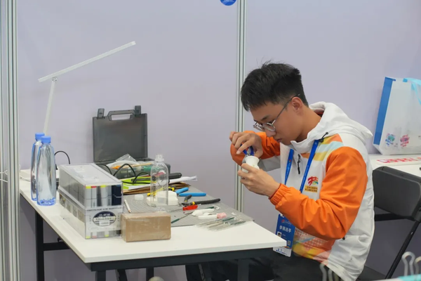 如果說本屆大賽是技能精英閃耀的星空,那么工業設計技術項目無疑是其中一顆匯聚了創新、藝術與科技光芒的明星。這不僅僅是一場技能的比拼,更是一場從“匠心”到“匠造”的完整旅程的極限挑戰。 走進賽場,聽不到喧嘩,只有鍵盤敲擊、手中畫筆劃過與3D打印機低鳴的交響。選手們伏案于屏幕前,他們的戰場是無限的數字空間。在這里,一項給定的產品命題,正經歷著一場由他們主導的“數字化蛻變”。 賽題精準對標行業真實需求,五大模塊環環相扣,嚴苛考驗著每一位“未來設計師”的全鏈路能力:他們需要化身“洞察者”,精準測量分析,尋找產品改良的最優解;作為“構思者”,用流暢的筆觸將天馬行空的創意落于紙上,完成概念草圖的手繪表達;成為“構建者”,在虛擬世界中高精度地構建3D模型,輸出工程圖與渲染圖,并駕馭3D打印機將數字模型變為實體;作為“匠造者”,對模型進行精細的打磨、涂裝與組裝,賦予它真實的質感與生命;最后,成為“講述者”,制作展示視頻,清晰闡述從分析到成品的完整設計邏輯。 這些未來工匠們正致力于構建“連接市場需求與先進制造的橋梁”。他們在此處的每一次點擊、每一筆勾勒、每一次打磨,都在為中國制造向“智能化、綠色化” 轉型升級積蓄著最前沿的創新力量。